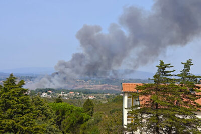Fumo que cobre a região de Leiria tem origem em incêndio de grandes proporções no Fundão
