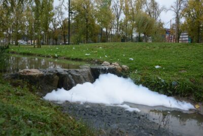Fogo industrial responsável por espuma branca visível no Jardim da Almoinha Grande