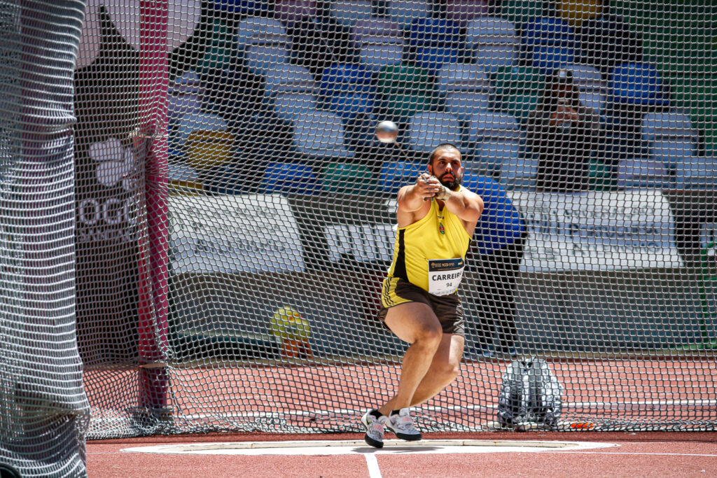 É uma época atípica, diz o atleta do Clube de Atletismo da Marinha Grande. Bateu por cinco vezes o recorde distrital de lançamento do martelo, a última no domingo, e diz que os 70 metros “estão próximos”