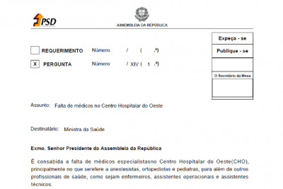 O documento questiona o Governo sobre a contratação de nove médicos, dez a menos do que o anunciado pela pasta da saúde.