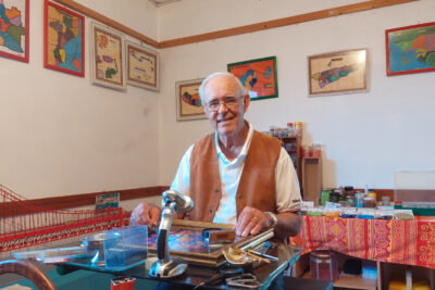 Aos 78 anos, Luís Cruz Oliveira soma mais de seis décadas dedicadas ao artesanato. Considera-se o homem dos sete ofícios e uma das suas paixões é fazer quadros com missangas.