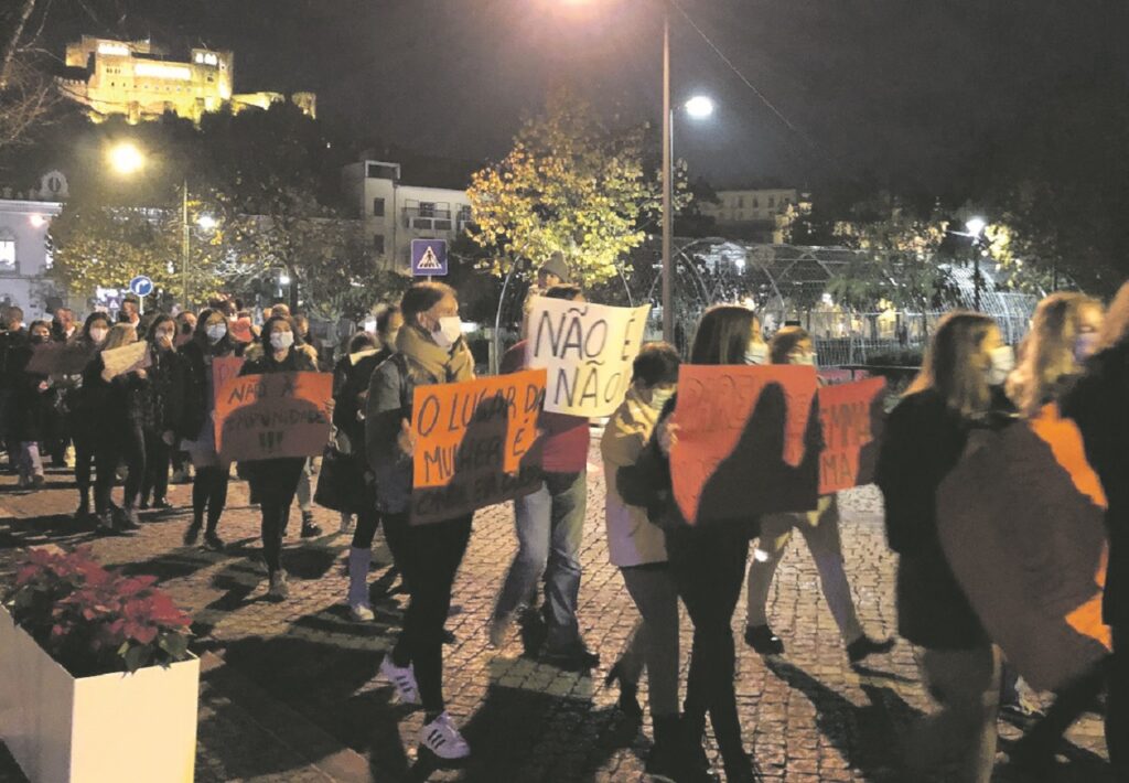 Manifestação pelo fim da violência contra as mulheres fez parar o trânsito em Leiria