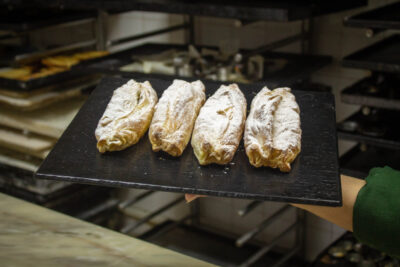 A “Trança de Natal” é feita com massa de bolo-rei sem fruta e recheada com creme de ovo, frutos secos e canela.