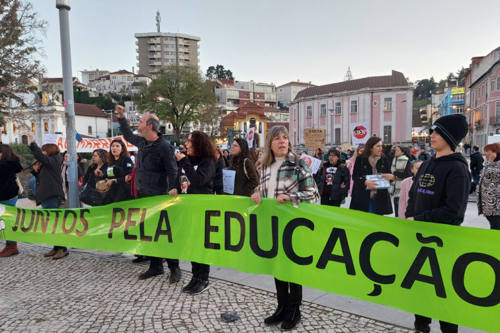 Professores de vários estabelecimentos de ensino da região manifestaram-se esta tarde no centro de Leiria, pela Educação.
