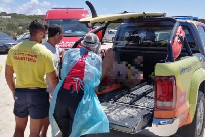 Praticante de bodyboard socorrido na praia das Pedras Negras
