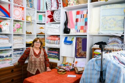 Laurinda Timóteo abriu o primeiro negócio há quase 40 anos, no centro histórico de Leiria. Atualmente com o nome Os Trabalhinhos da Laurinda, é lá que se podem encontrar peças artesanais únicas.