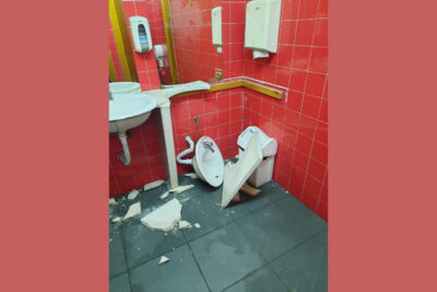 Um dos equipamentos sanitários do parque em Pombal foi completamente destruído.
