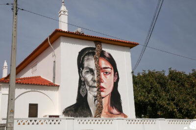 Mural foi pintado por Tamara Alves e YZ Yseult Digan na fachada da antiga escola primária da Nazaré.